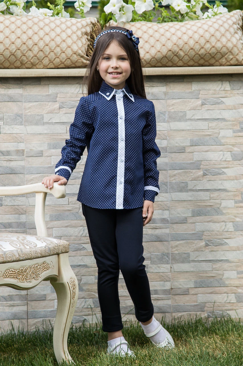 Строгая синяя рубашка Алина в горошек для девочки Suzie р.140-158