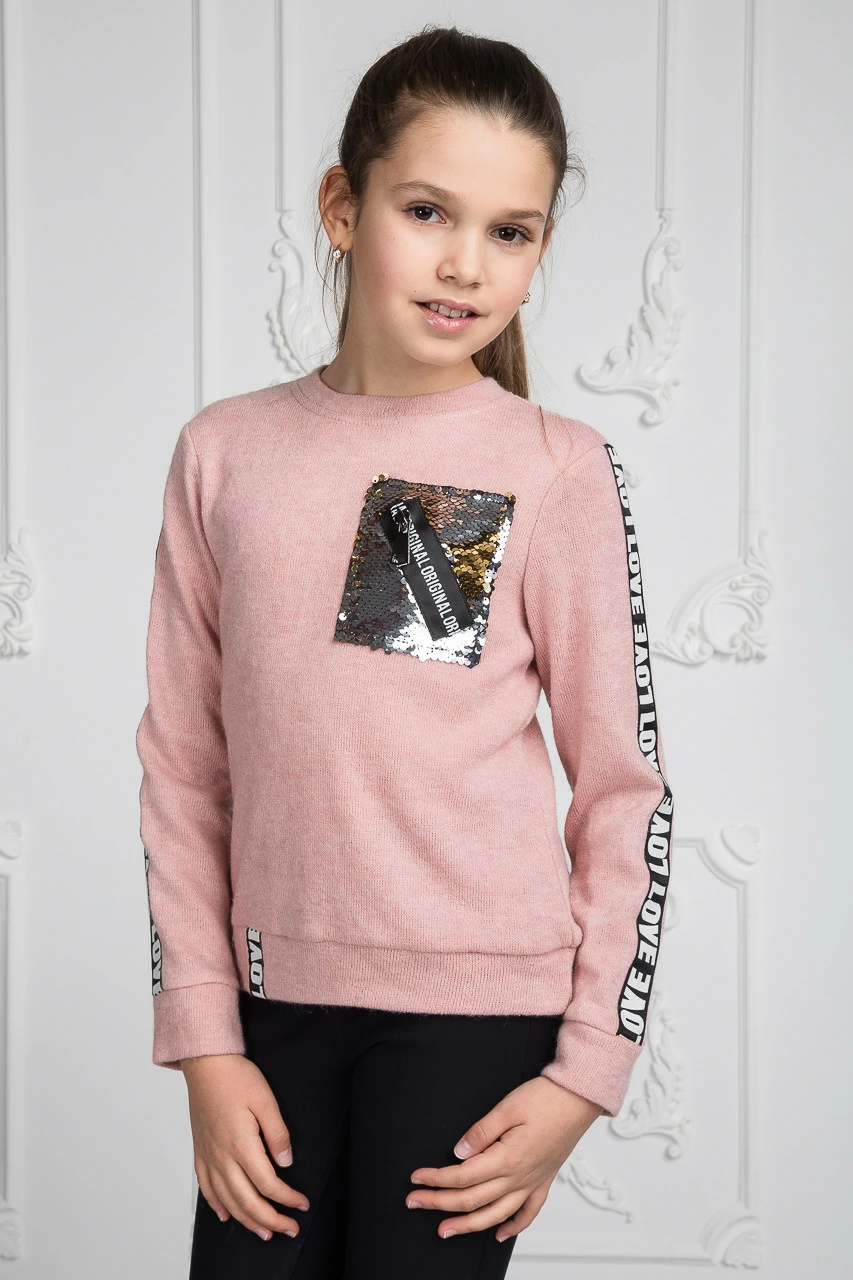 Трикотажная детская кофта Алсу с паетками для девочки Suzie пудра р.134-158