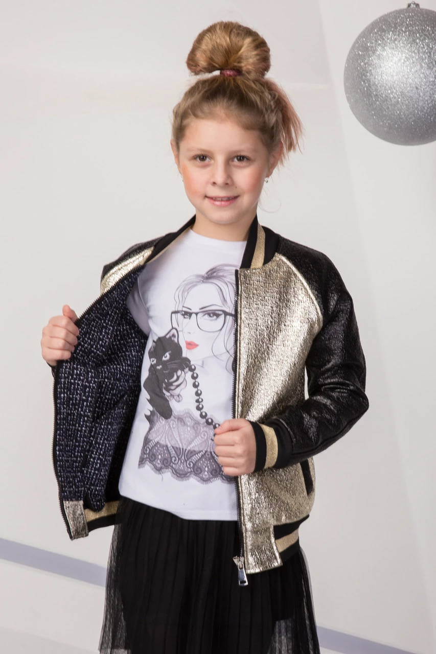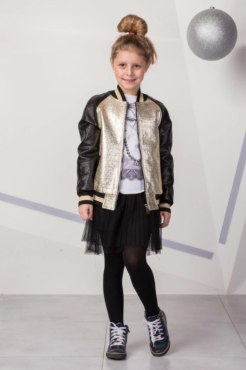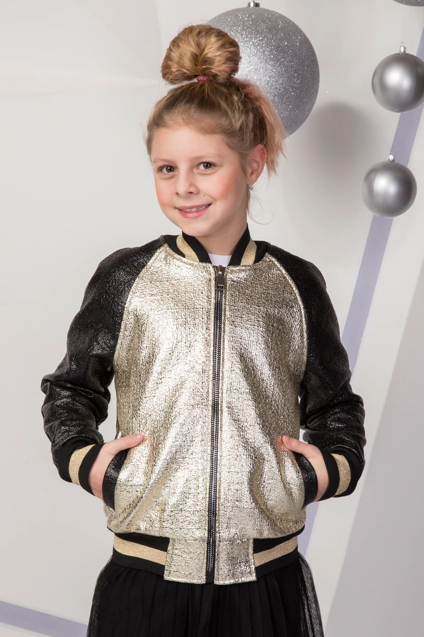 Детский бомбер куртка Санти Весна-Осень для девочки Suzie золотого цвета р.146-158