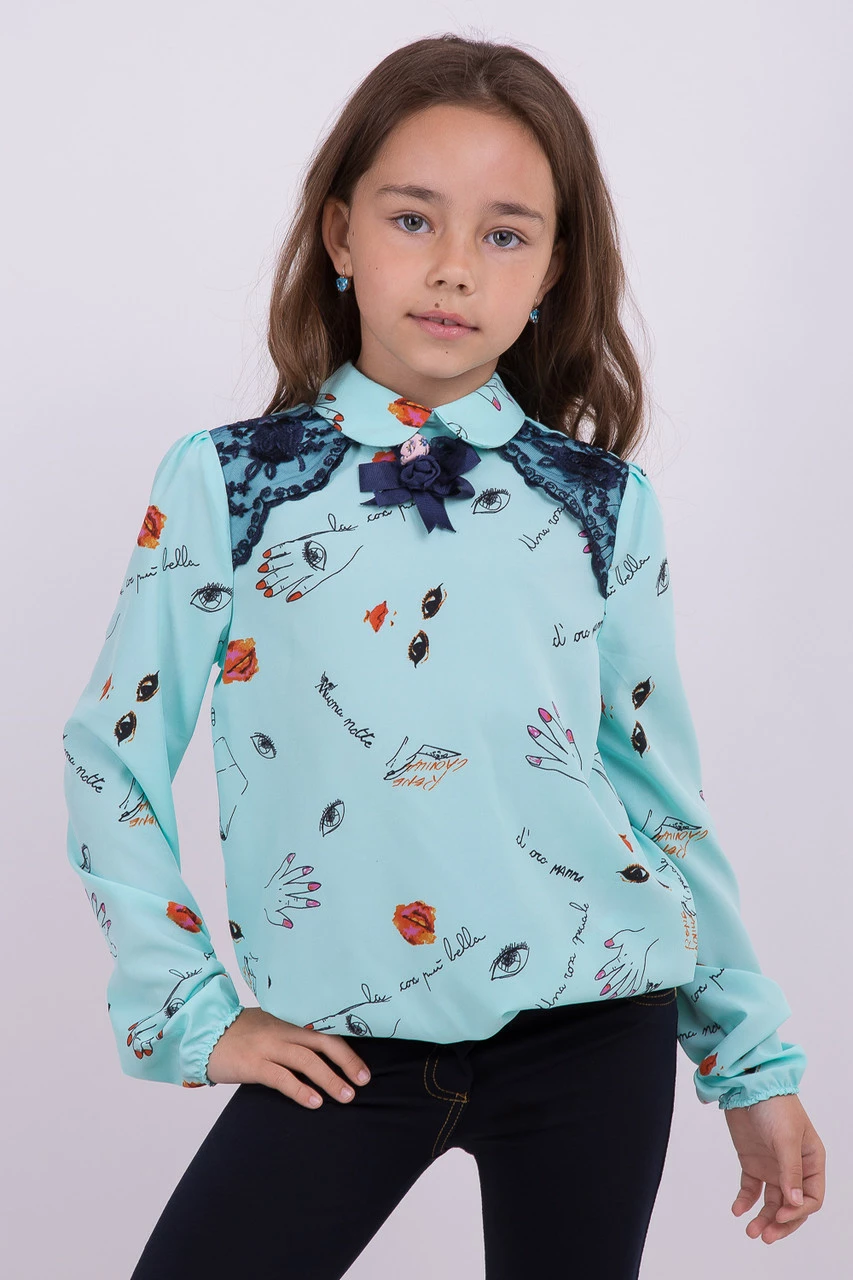 Мятная детская блуза с украшением для девочки с украшением Suzie. Дорофея блуза мята р.134