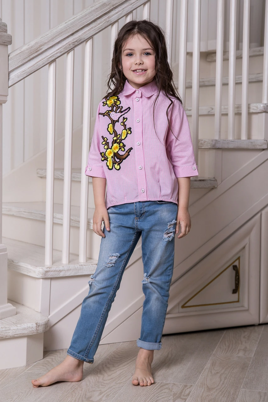 Детская хлопковая рубашка Эльвира в розовую клетка для девочки Suzie р.116-134