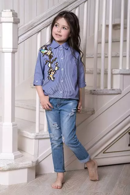 Необычная красивая детская блуза-рубашка с рисунком Suzie. Эльвира рубашка голубой полоска р.128