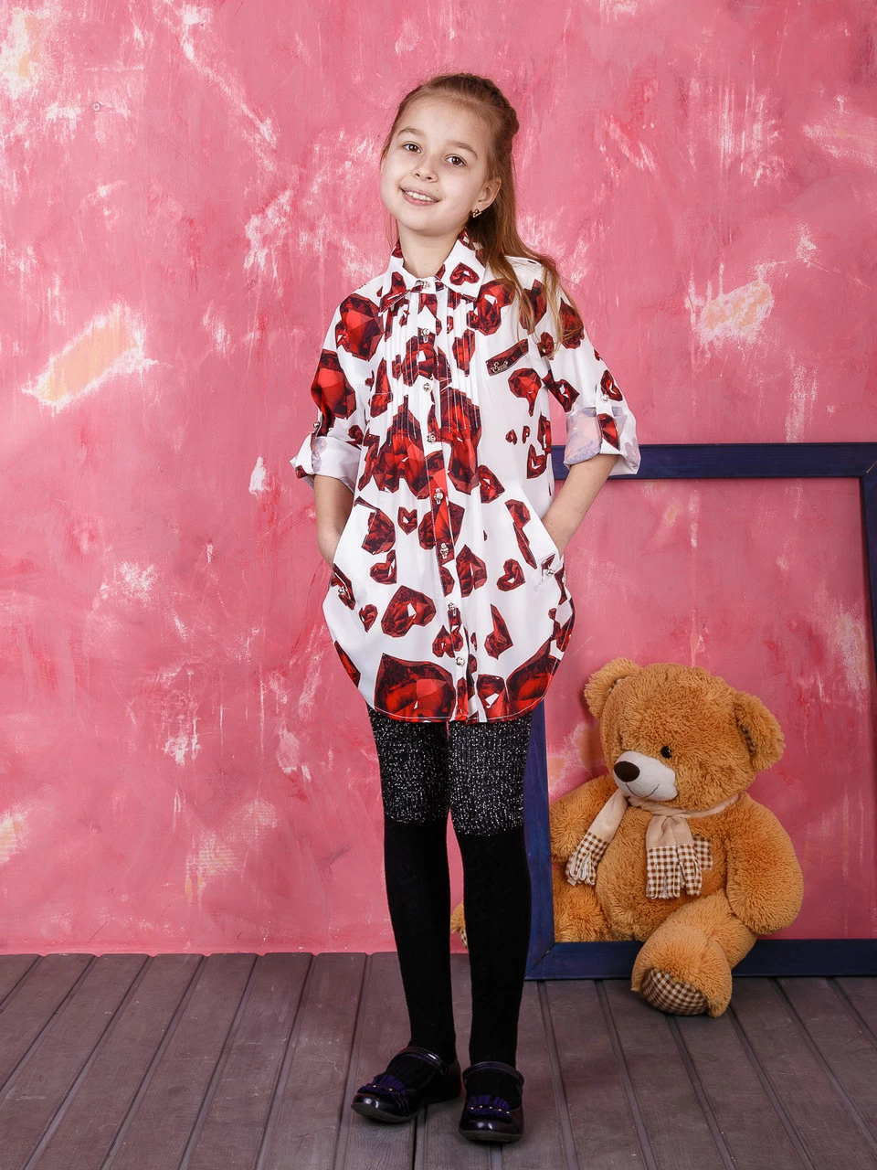 Длинная детская блуза рубашка Эля с красными изумрудами для девочки Suzie р.128-158