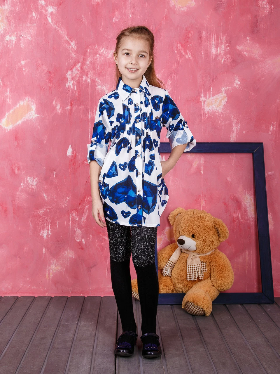 Удобная и практичная длинная блуза Эля с синими изумрудами для девочки Suzie р.128-158