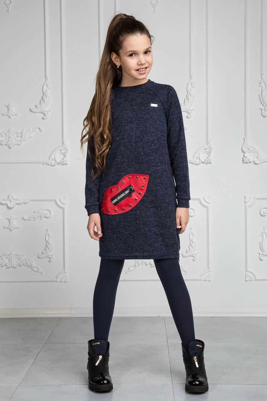 Детское стильное платье для девочки с карманом в форме губ Suzie. Фарра.1 платье синий р.152