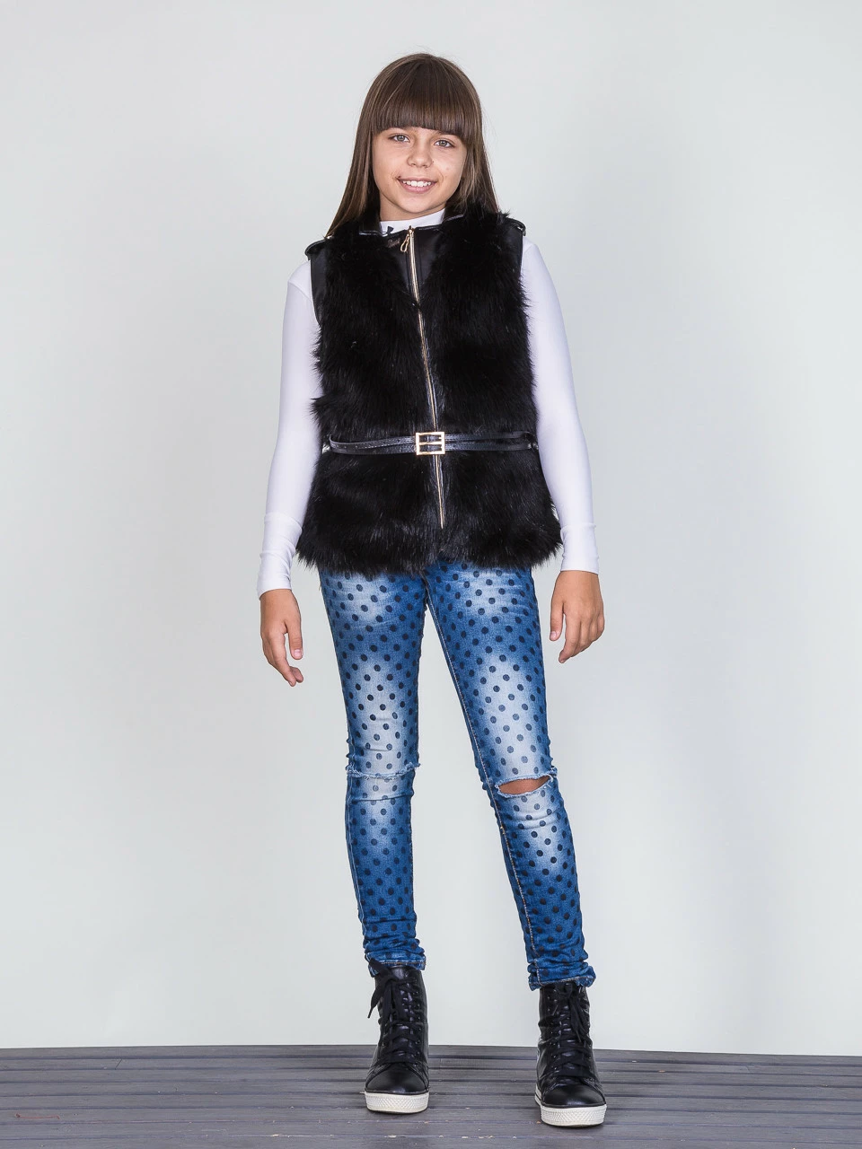 Инга комплект жилетка енот черный р.116-134