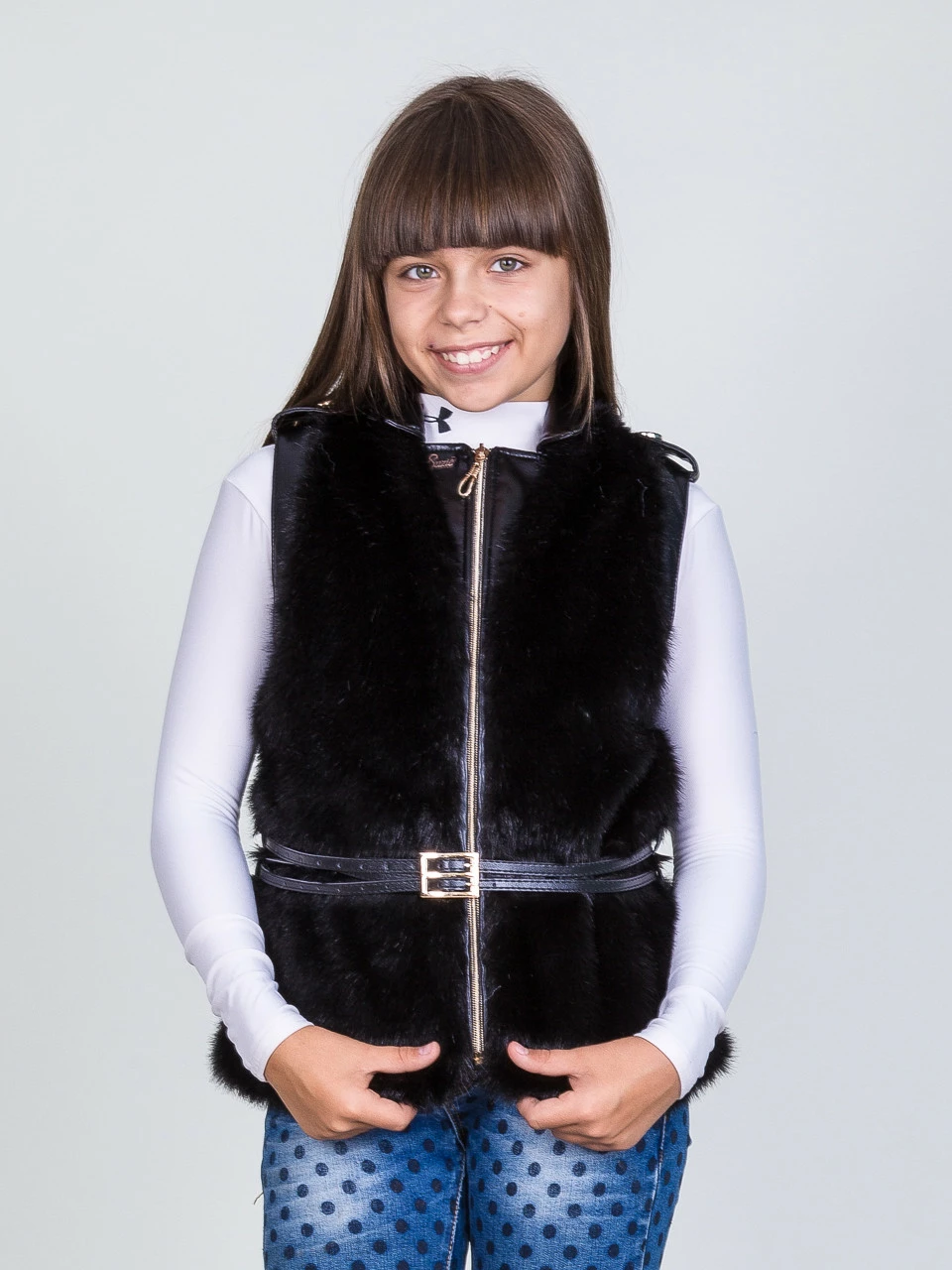 Инга комплект жилетка норка черная р.116-134