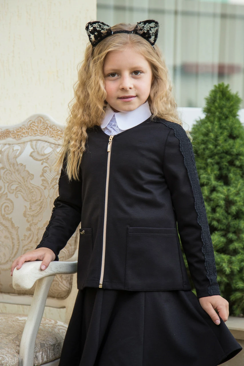 Школьный черный жакет Келли из удобной трикотажной ткани.
