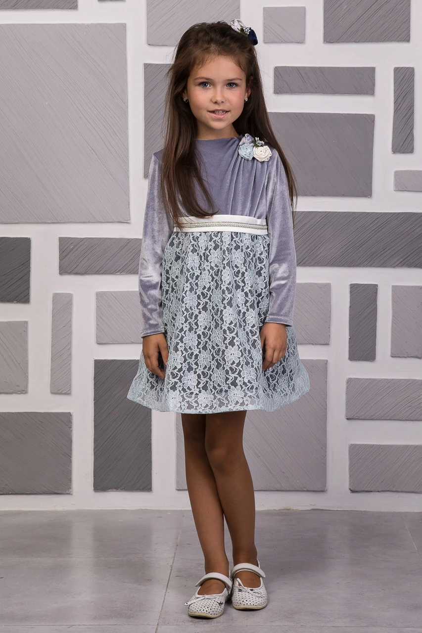 Серое нарядное платье для девочки с кружевом Suzie. Кинди платье серый р.116