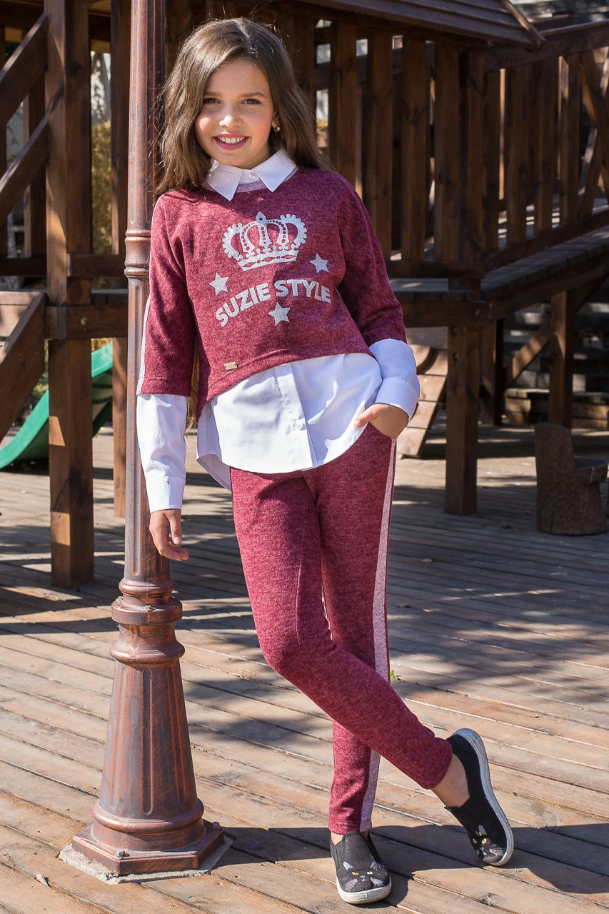 Костюм для девочки Багира, кофта и штаны бордо р.116-140