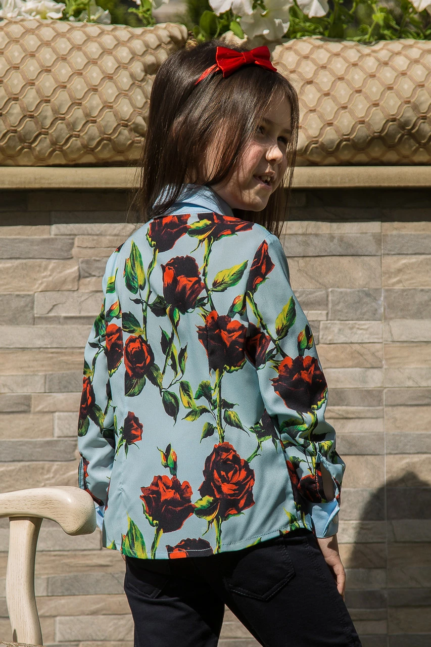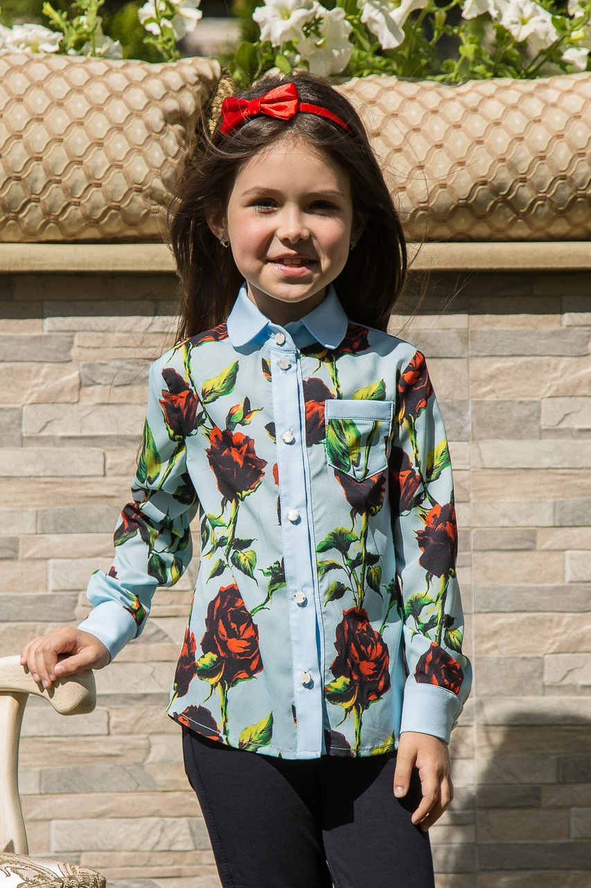 Голубая блуза для девочки с розами Suzie. Лайза блуза голубой роза р.116