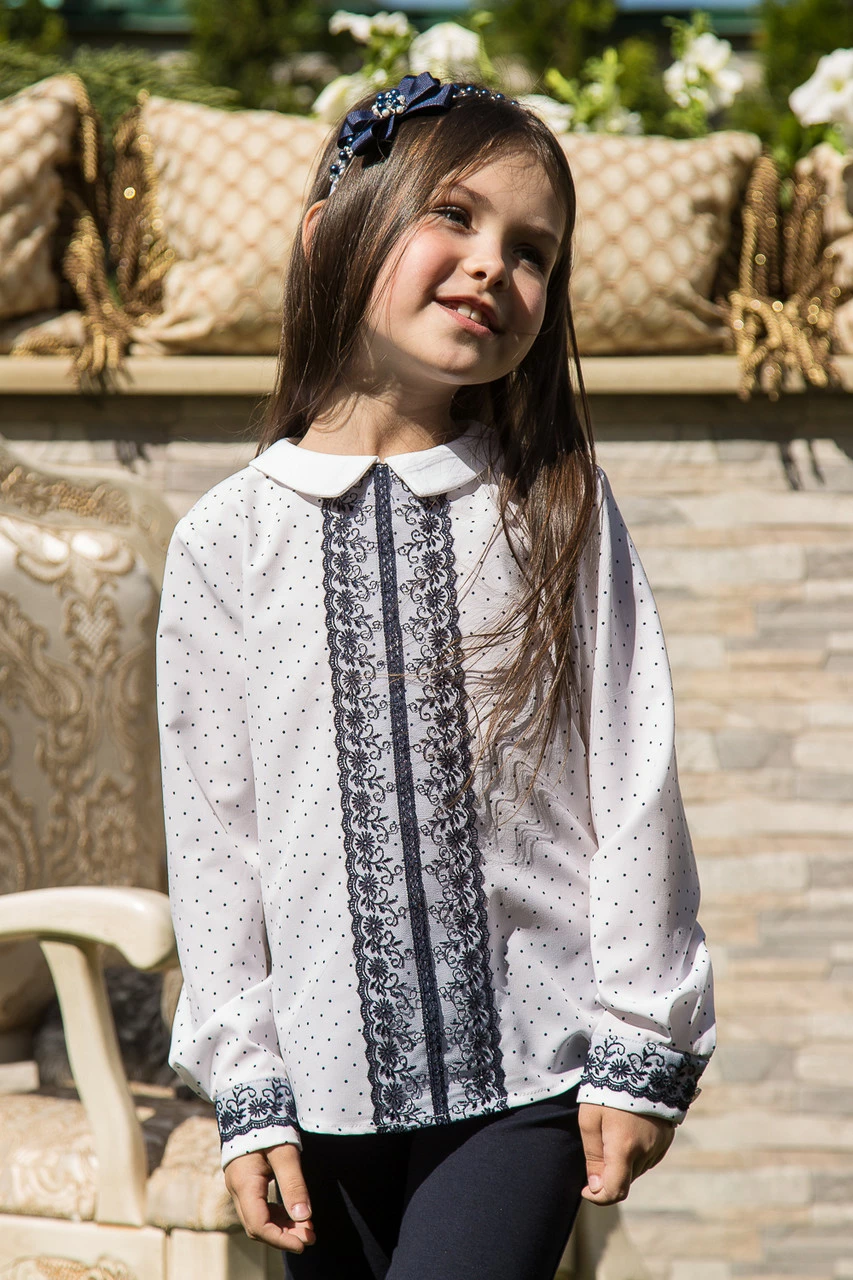 Белая блуза Леонтайн детская красивая в белый горох для девочки Suzie р.140-158