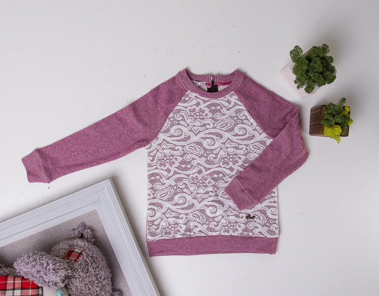 Трикотажная нарядная кофточка для девочки с кружевом Suzie. Лола кофта слива р.116