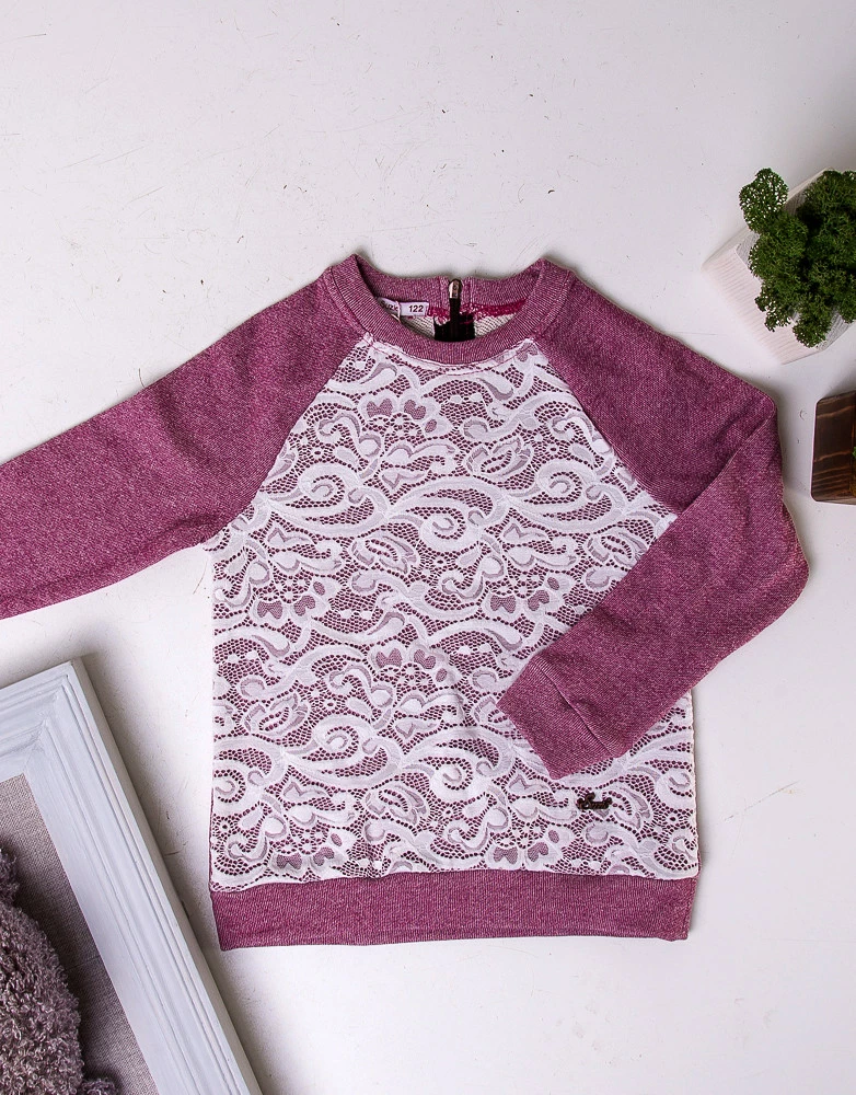 Трикотажная нарядная кофта Лола с кружевом для девочки Suzie сливового цвета р.116-140