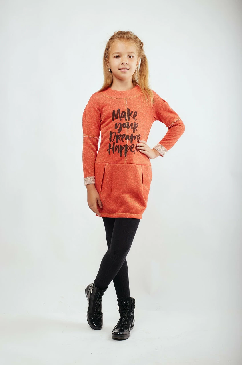 Удобное короткое платье для девочки из трикотажа Suzie. ?лона платье морковный р.140