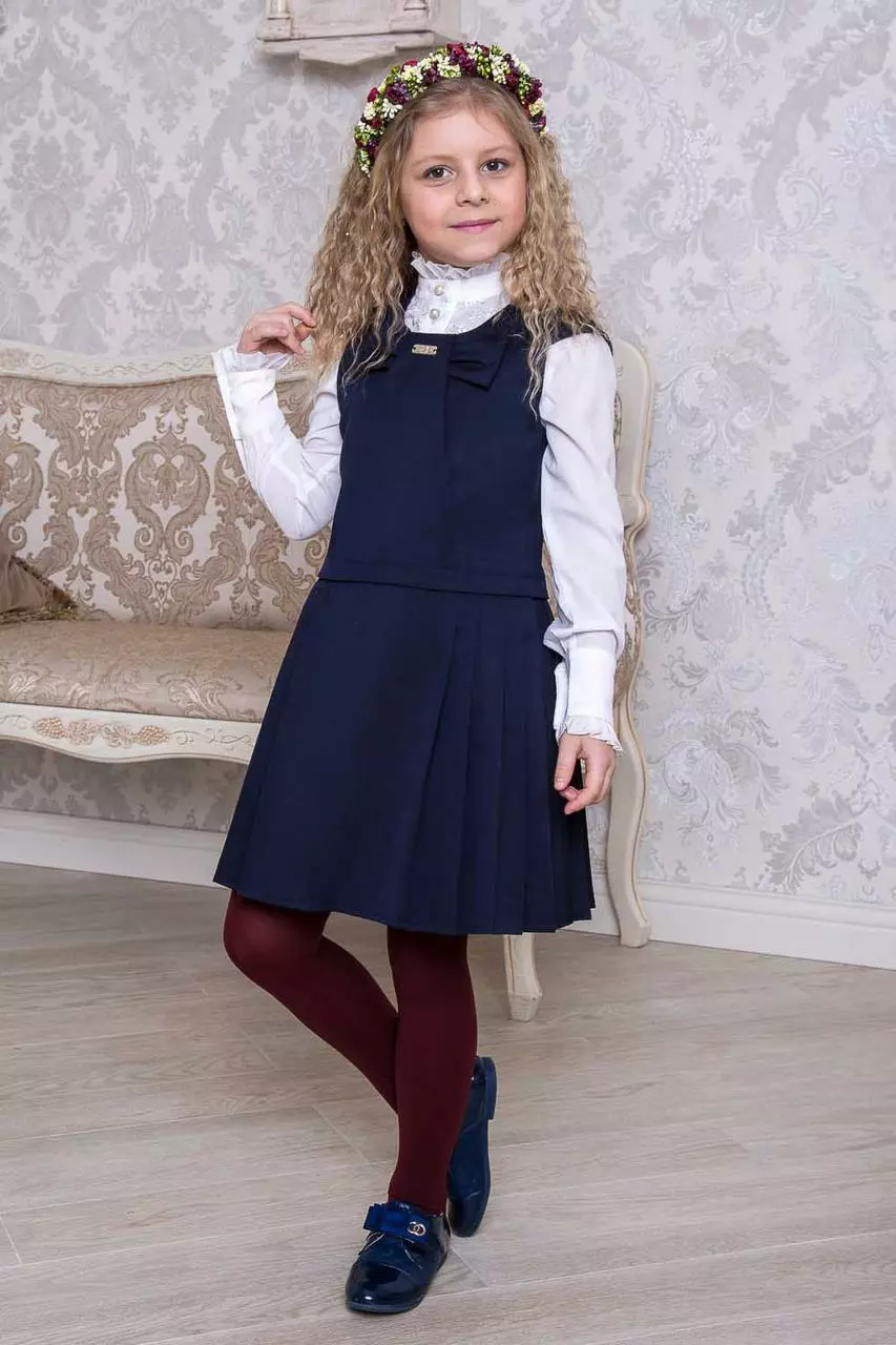 Стильный школьный сарафан Мадлен с бантом впереди.