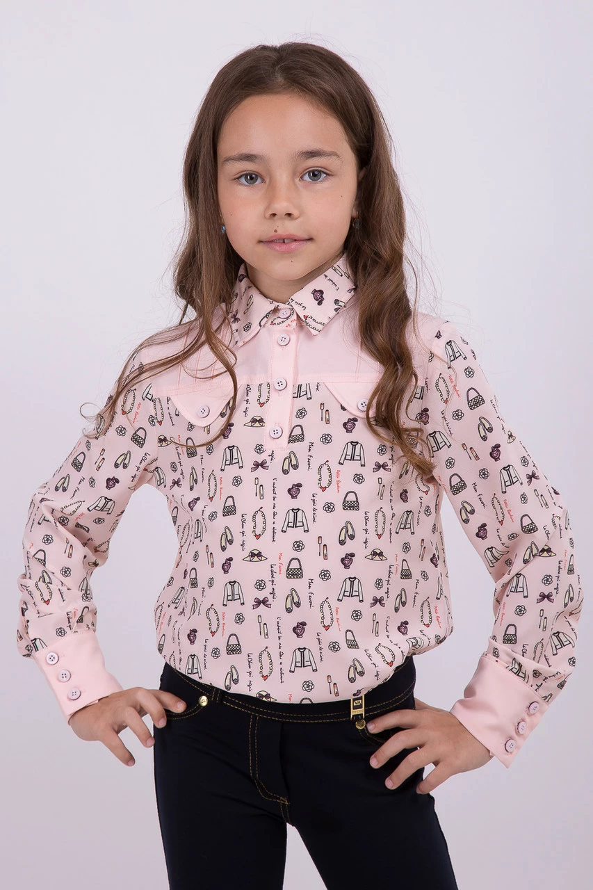 Детская блуза рубашка для девочки с модным принтом Suzie. Мира блуза пудра р.134