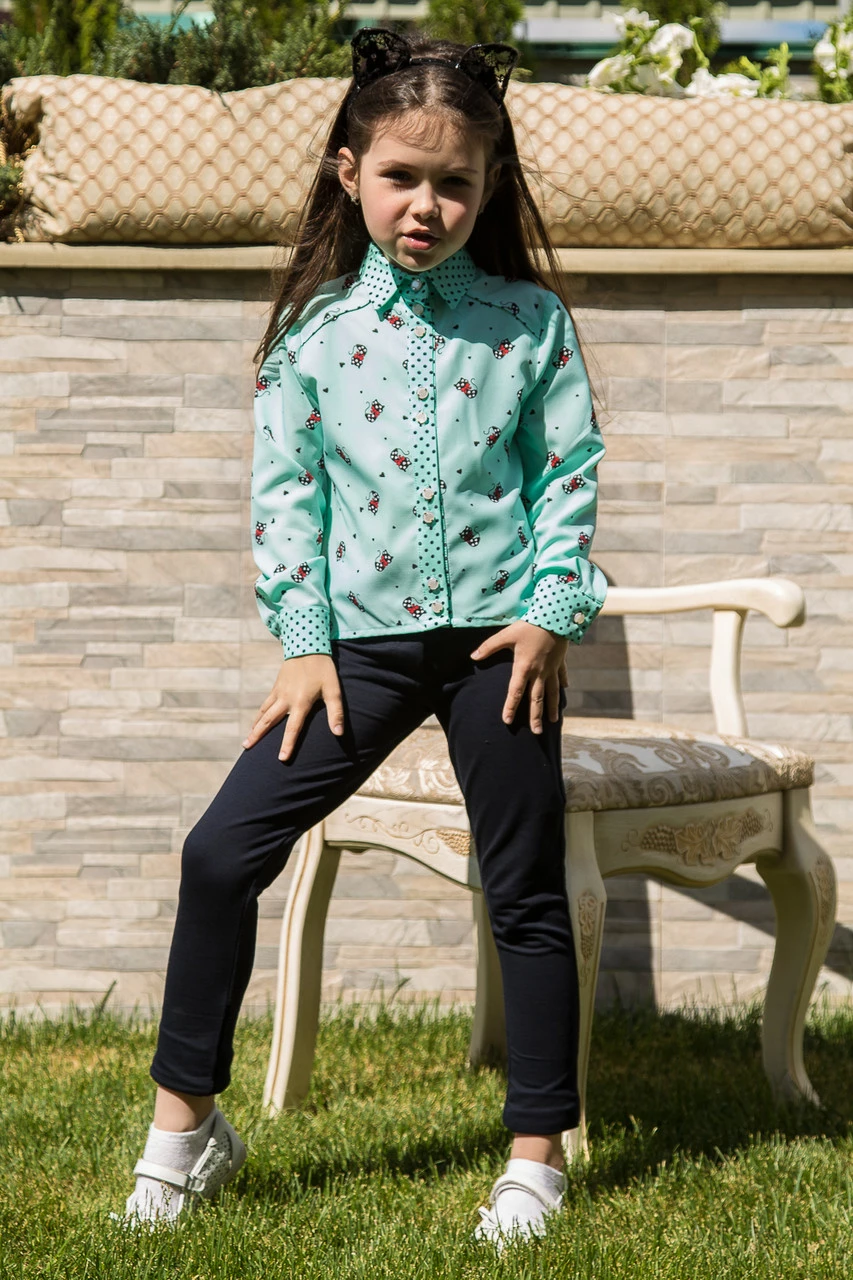 Мятная детская блуза рубашечного типа на пуговицах Suzie. ?нна блуза мята кот р.116