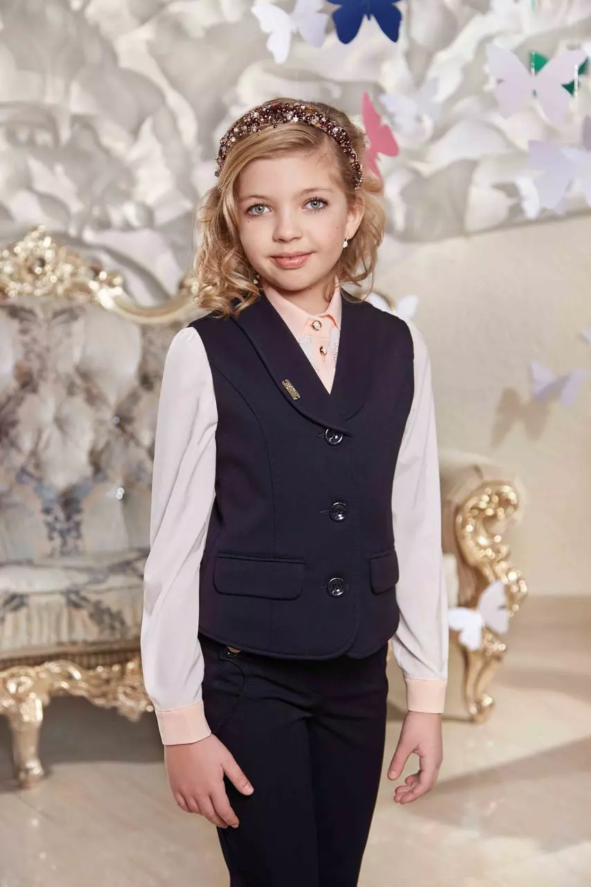 Детская жилетка Паула для девочки синего цвета из костюмной ткани.