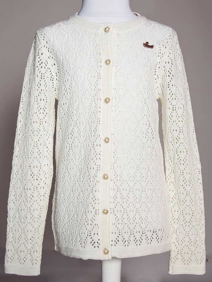 Красивая детская кофта на пуговицах жемчужинках для девочки Suzie. Кофта вязка молочный р.146