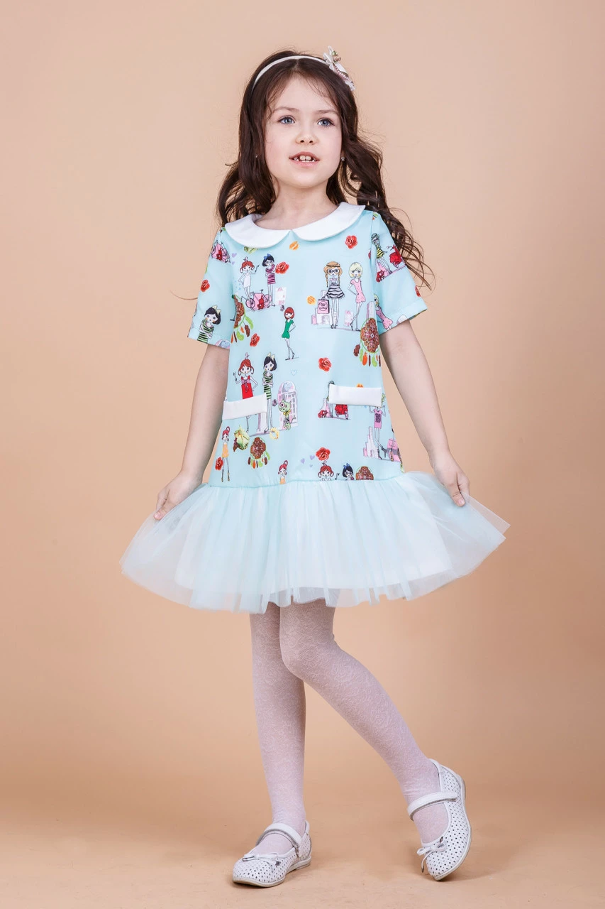 Модный принт и праздничный фатин украшают изделие.