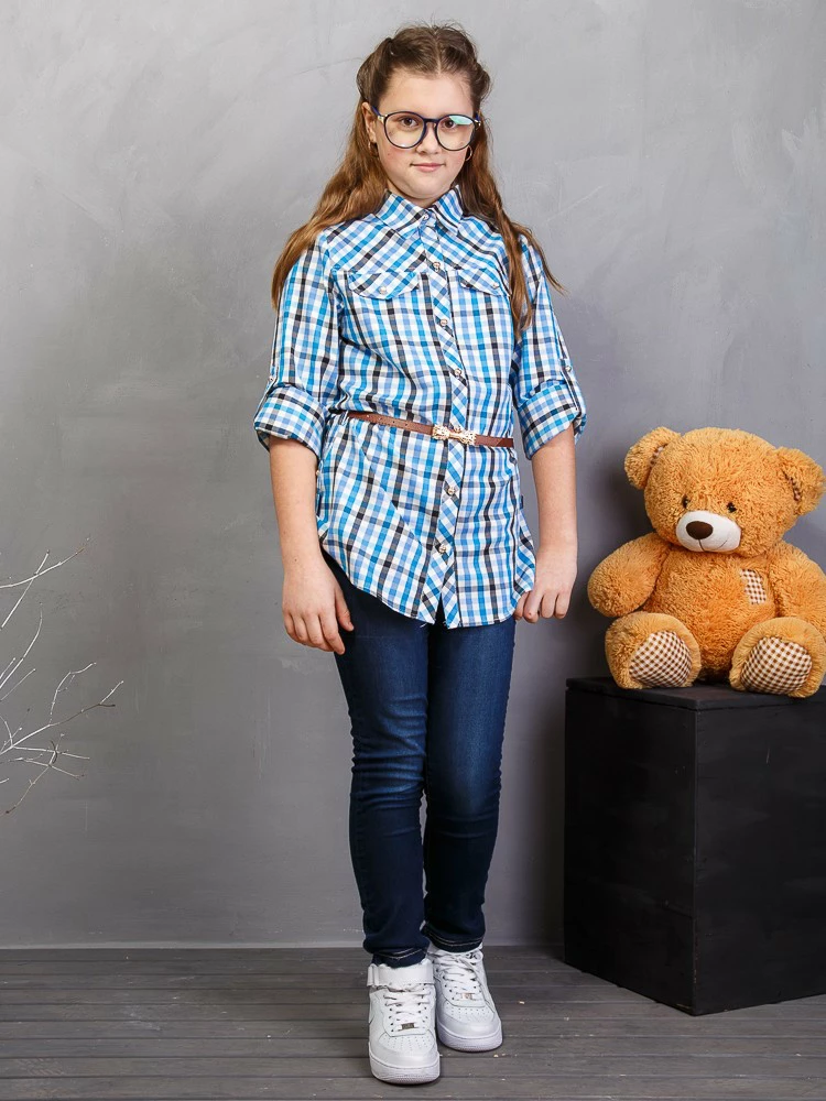 Стильная рубашка Вера для девочки подростка Suzie в крупную клетку р.128-158