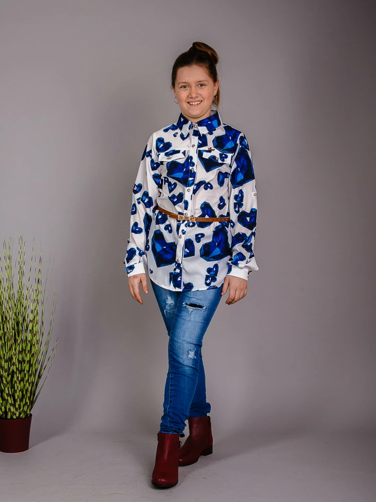 Рубашка с пояском для подростка с синим узором Suzie. Вера рубашка изумруд синий р.152